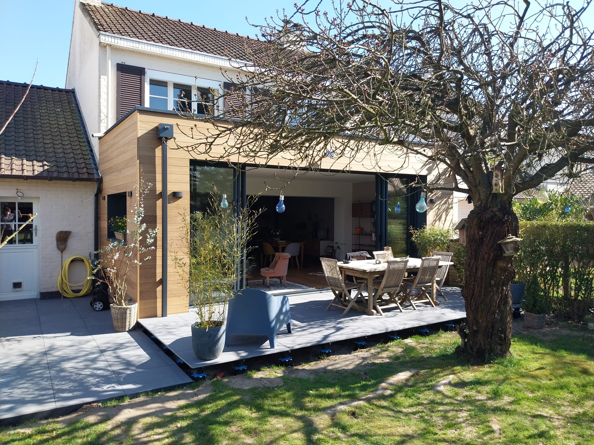 Dans un quartier résidentiel de Lambersart, cette maison des années 80 disposait d’un jardin généreux mais d’une façade arrière peu valorisée. Les espaces intérieurs, compartimentés, limitaient la lumière naturelle et la relation avec l’extérieur.